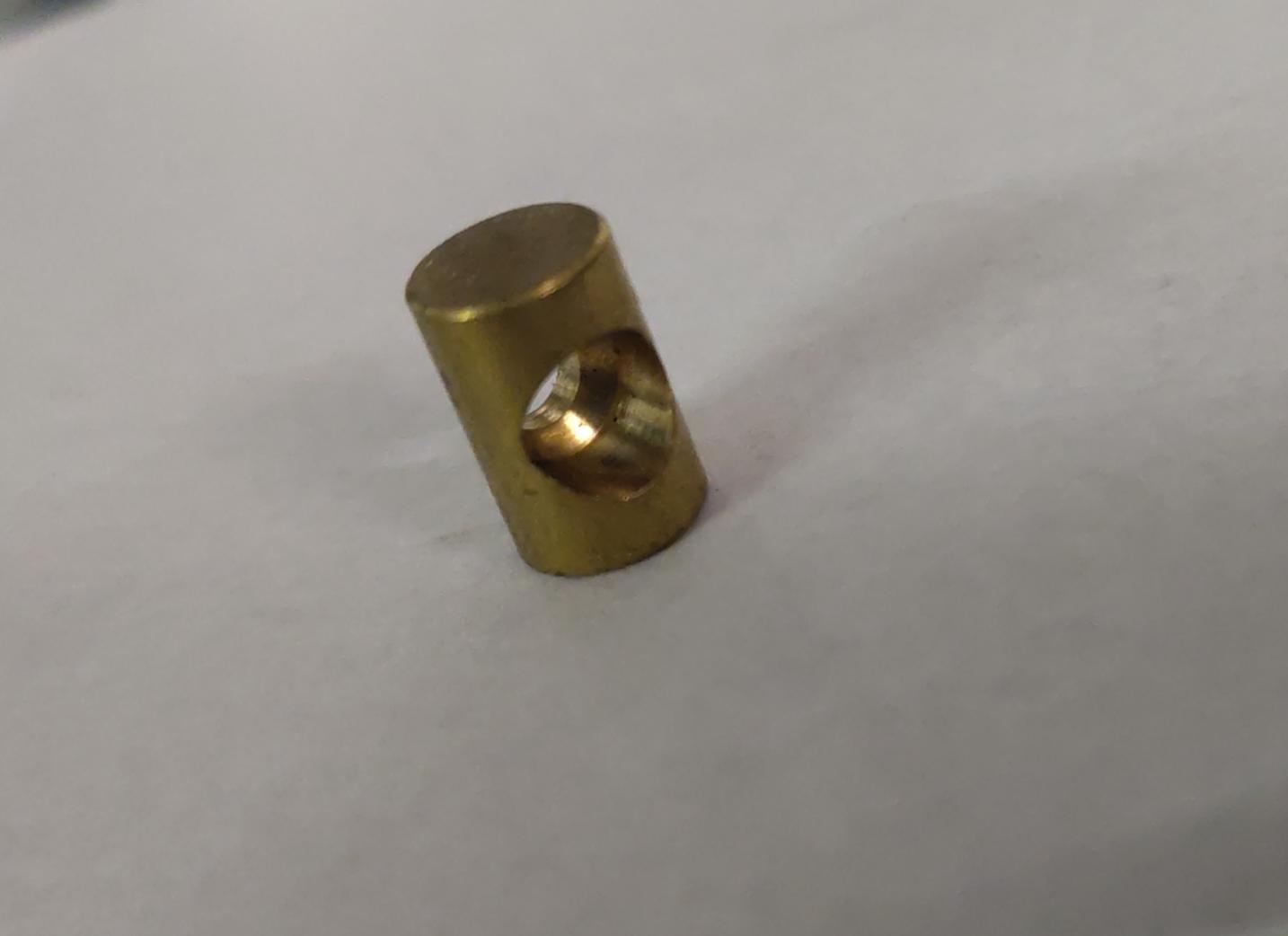 Haltenippel für die korrekte Befestigung des Schaltkabels am Schalthebel beim Motor, orignial aus Messing.